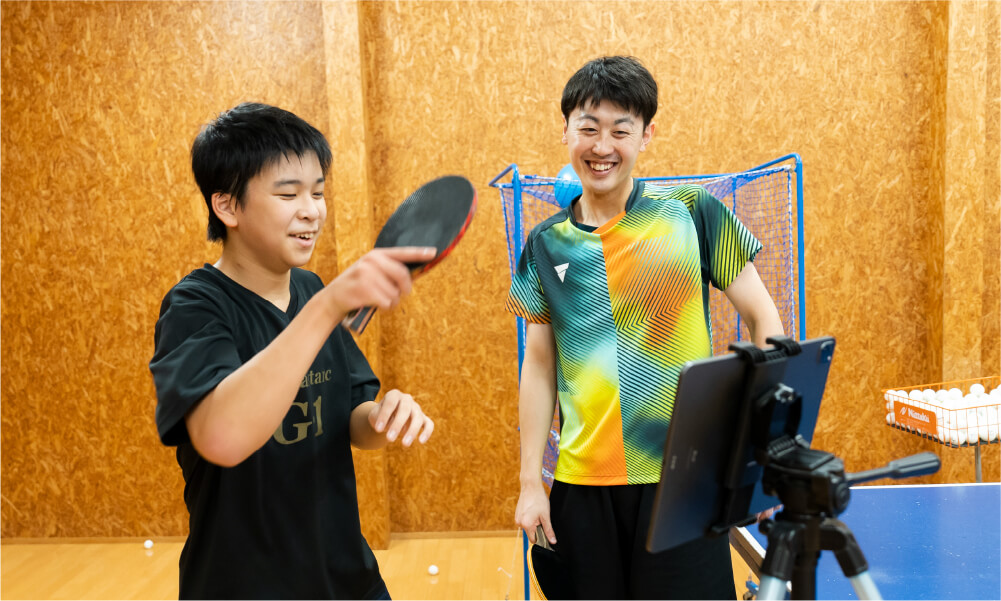 からだの健康を保つ方法や、上達するための考え方を卓球を通じてお伝えし お客様の成長をサポートします。また、レッスン中の動画撮影サービスも 行っていますので、自宅にいても卓球の成長を楽しむことができます。